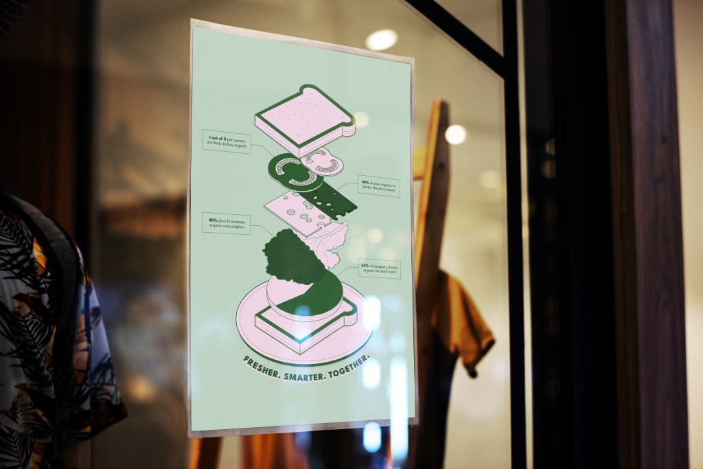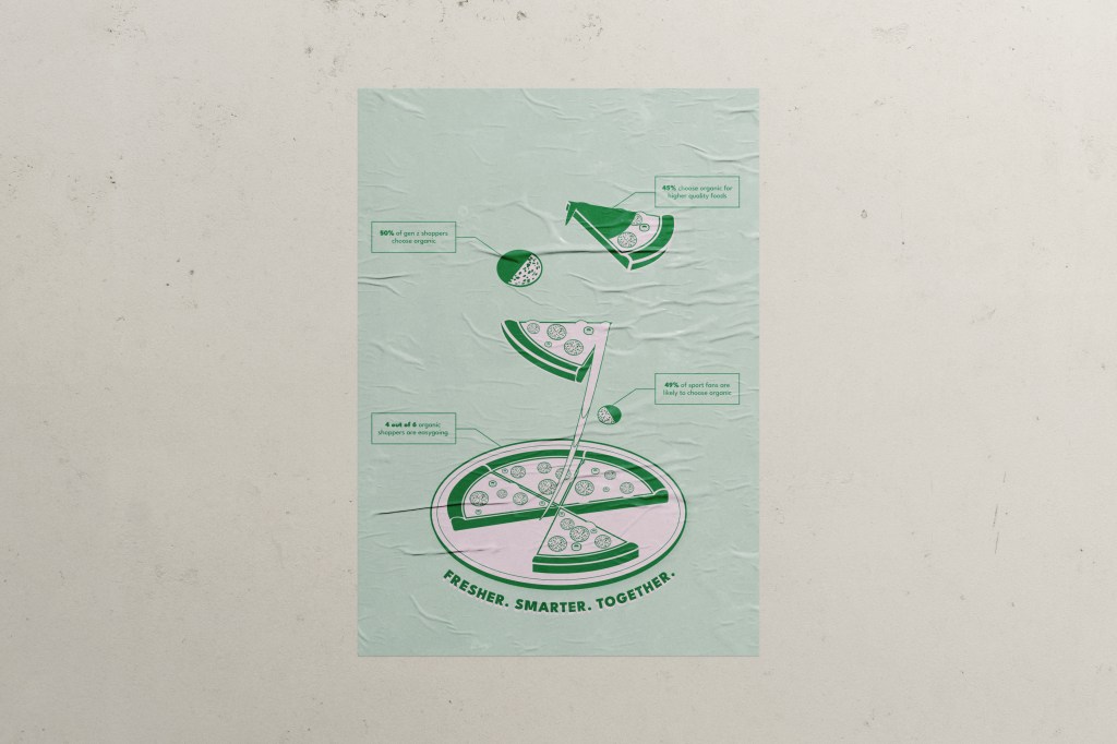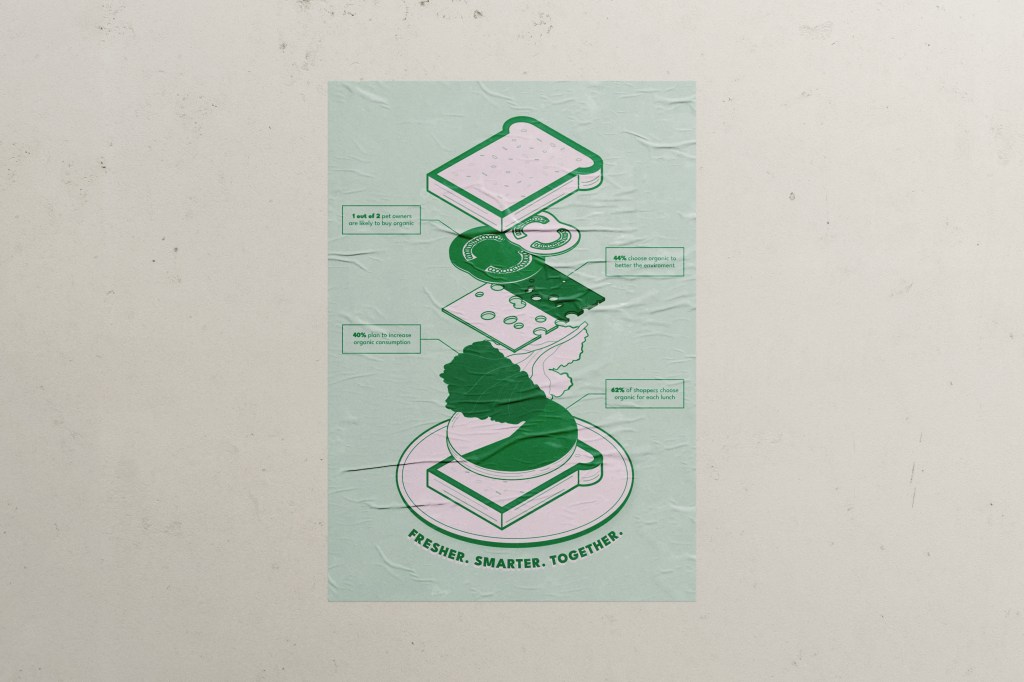 The focus of this project is the large format infographic poster. It’s full of information and custom illustration, and for good reason. The topic of our food supply chain and its effects on climate change are intertwined, and at times it can be overwhelming to understand it.